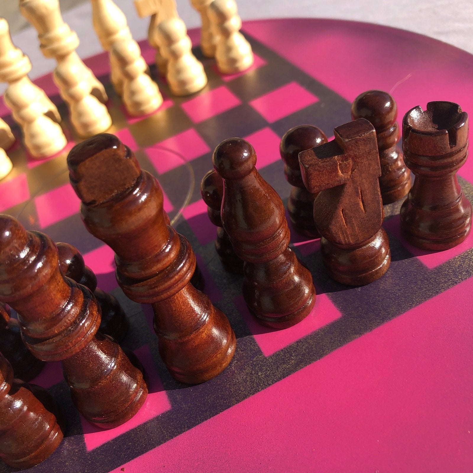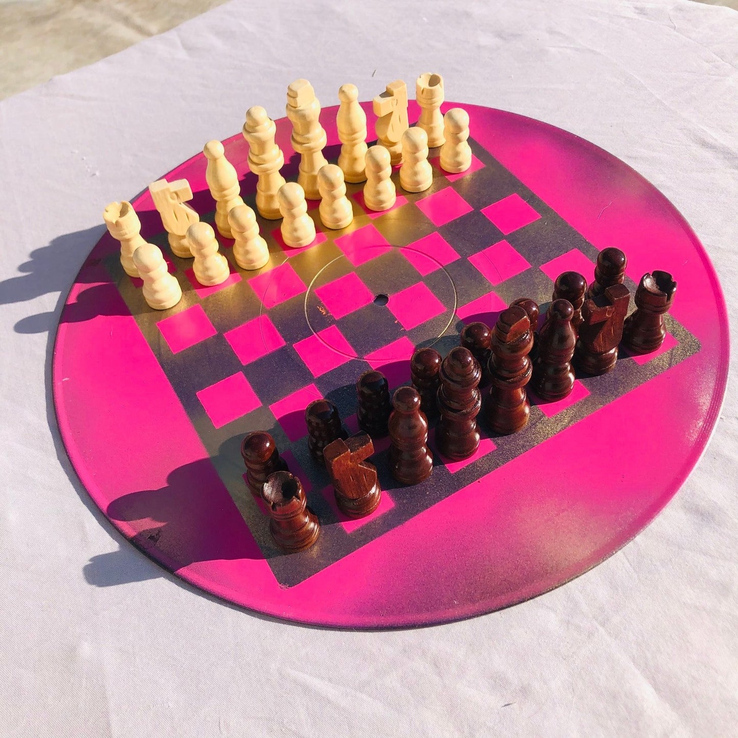 Introducing our unique Vinyl Record Chess Sets. Each set features handcrafted vinyl records transformed into eye-catching chess sets in a variety of vibrant colors. These one-of-a-kind chess sets are not just a game, but a piece of art to elevate your game nights and decor. Embrace the nostalgia of vinyl records with a modern twist in these bespoke, limited edition chess sets.
