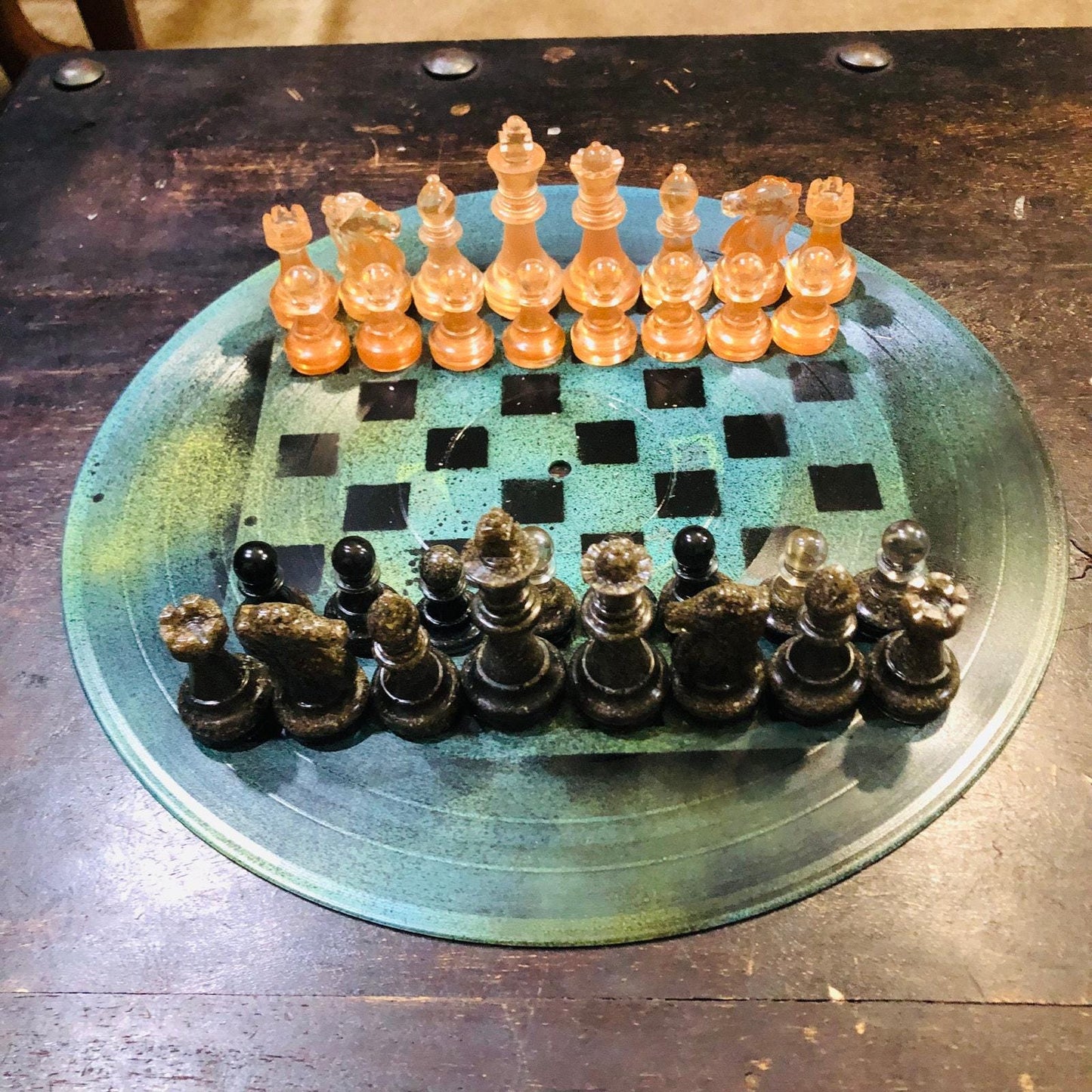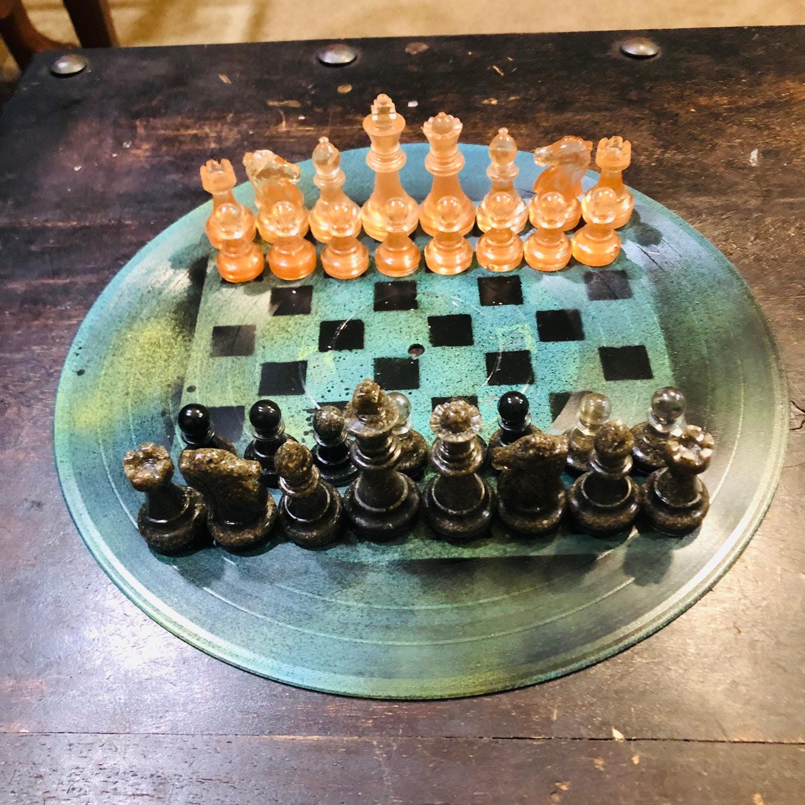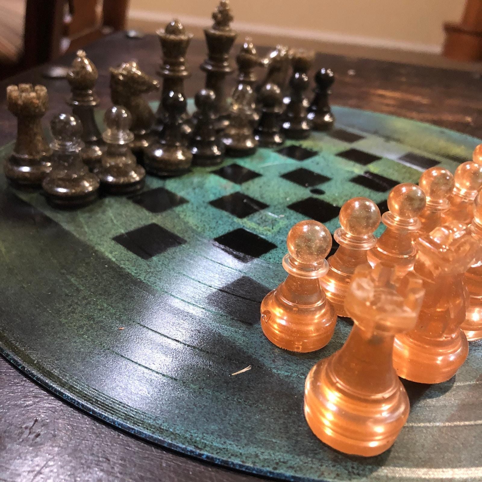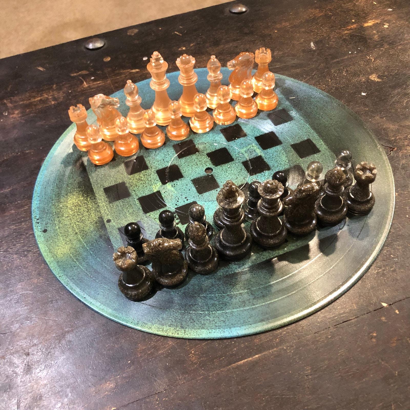 Introducing our unique Vinyl Record Chess Sets. Each set features handcrafted vinyl records transformed into eye-catching chess sets in a variety of vibrant colors. These one-of-a-kind chess sets are not just a game, but a piece of art to elevate your game nights and decor. Embrace the nostalgia of vinyl records with a modern twist in these bespoke, limited edition chess sets.