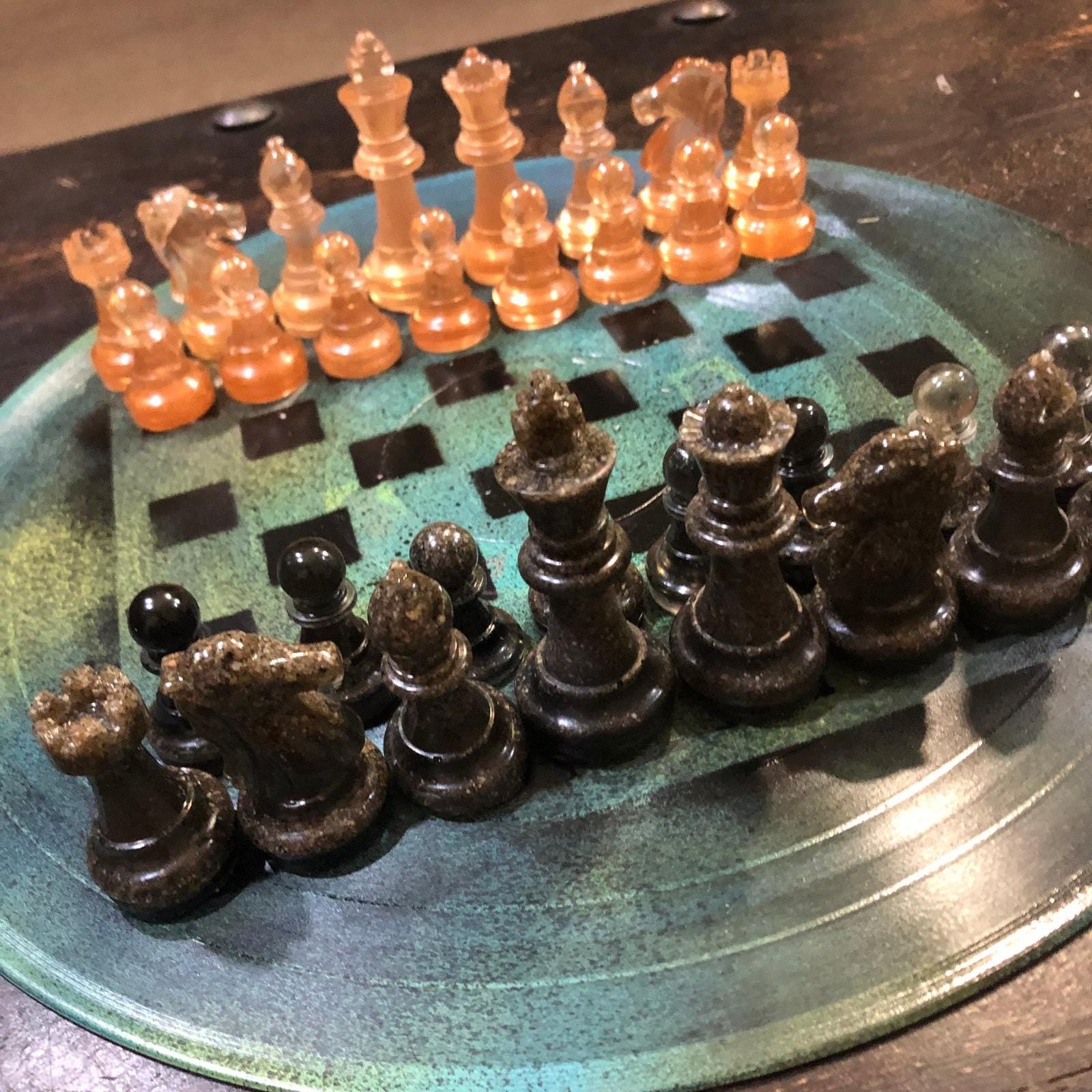 Vinyl Chess Set - Sea Moss Green (Resin Pieces)