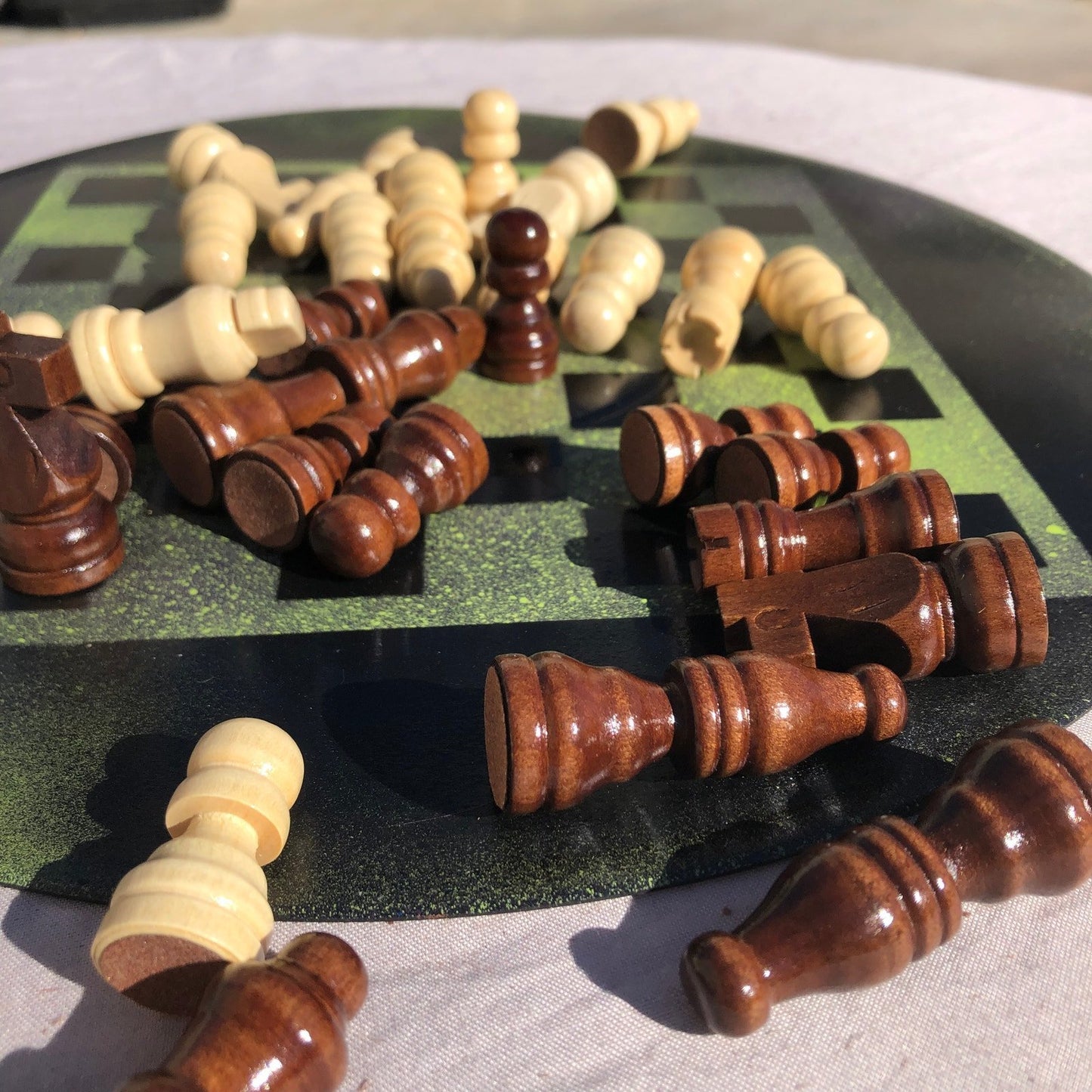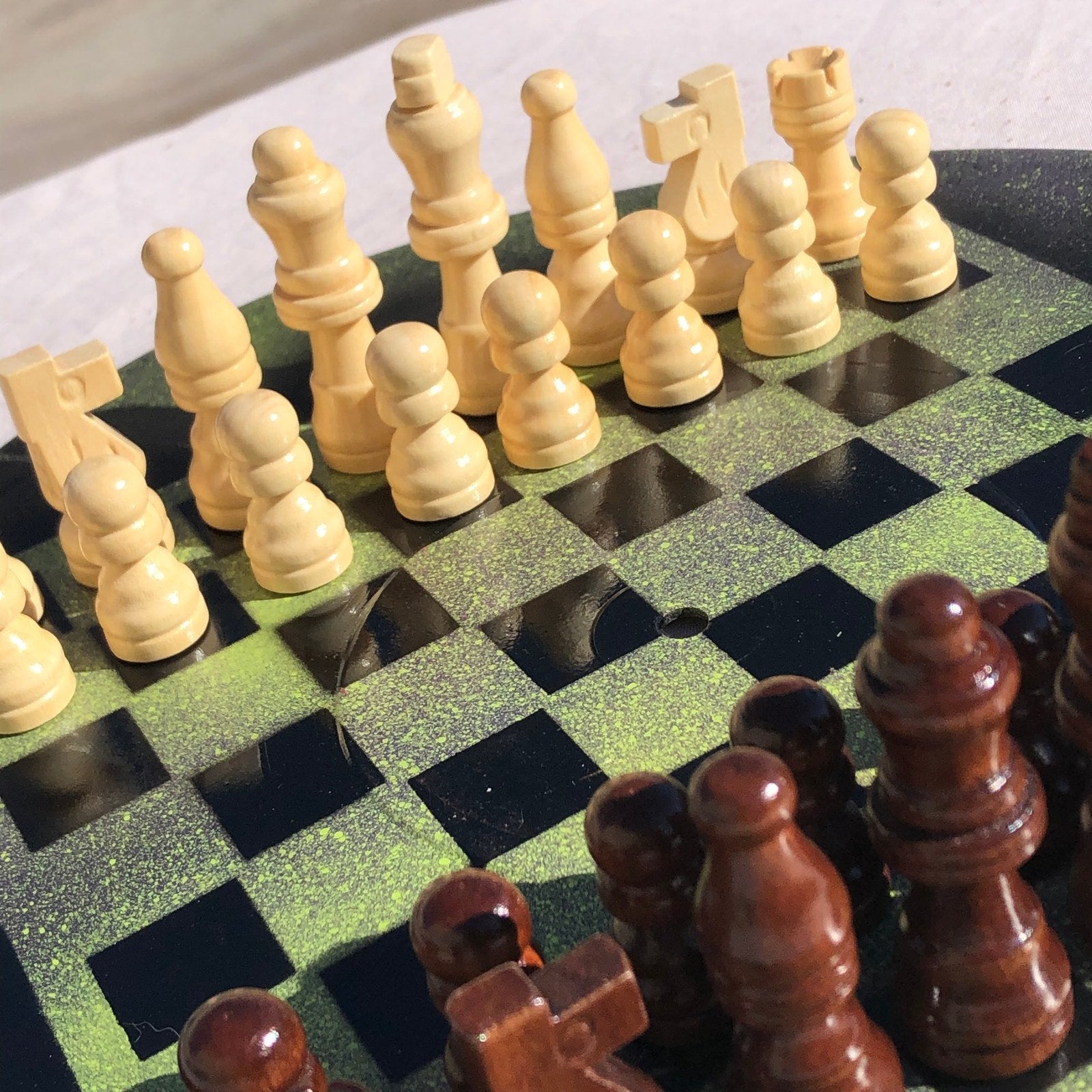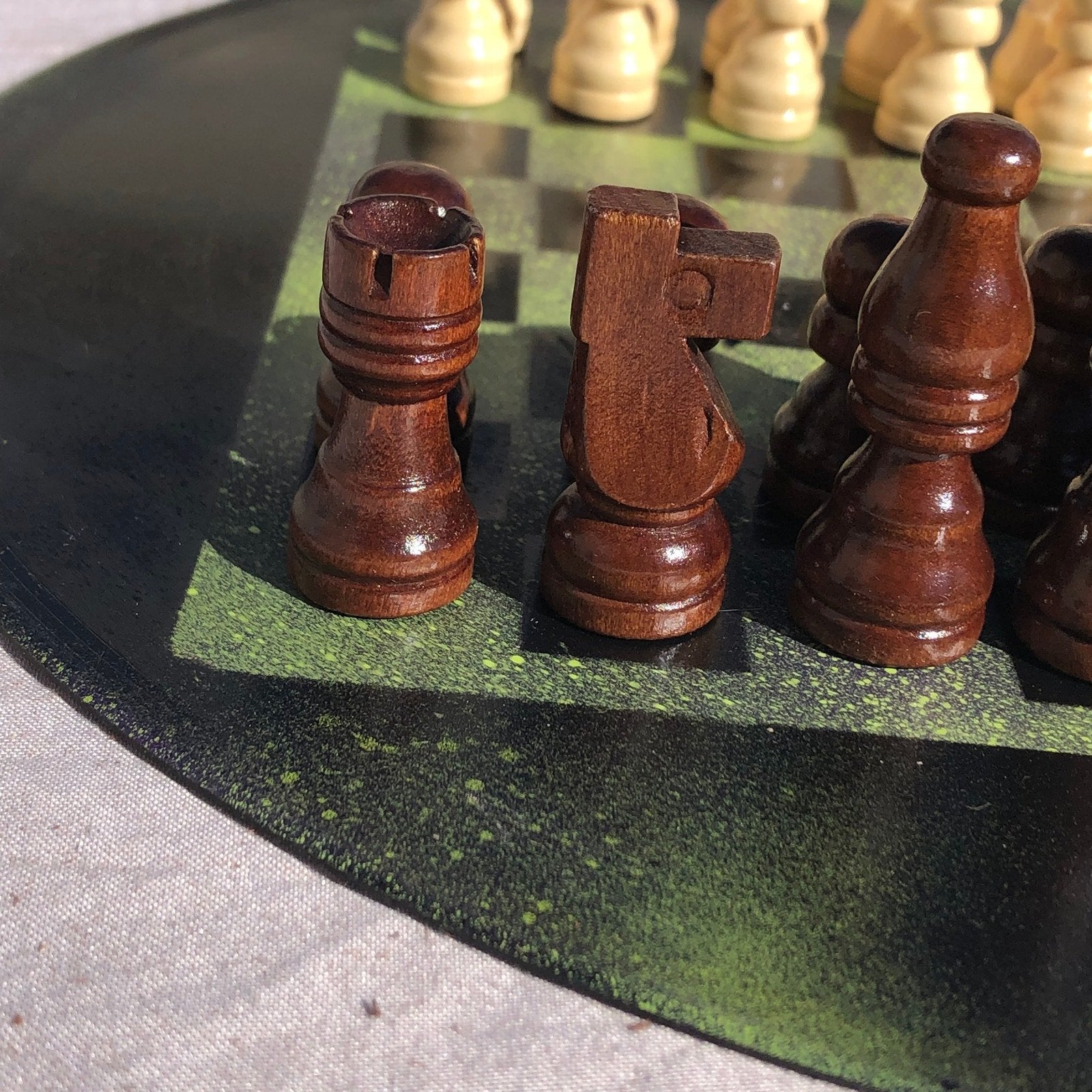 Introducing our unique Vinyl Record Chess Sets. Each set features handcrafted vinyl records transformed into eye-catching chess sets in a variety of vibrant colors. These one-of-a-kind chess sets are not just a game, but a piece of art to elevate your game nights and decor. Embrace the nostalgia of vinyl records with a modern twist in these bespoke, limited edition chess sets.
