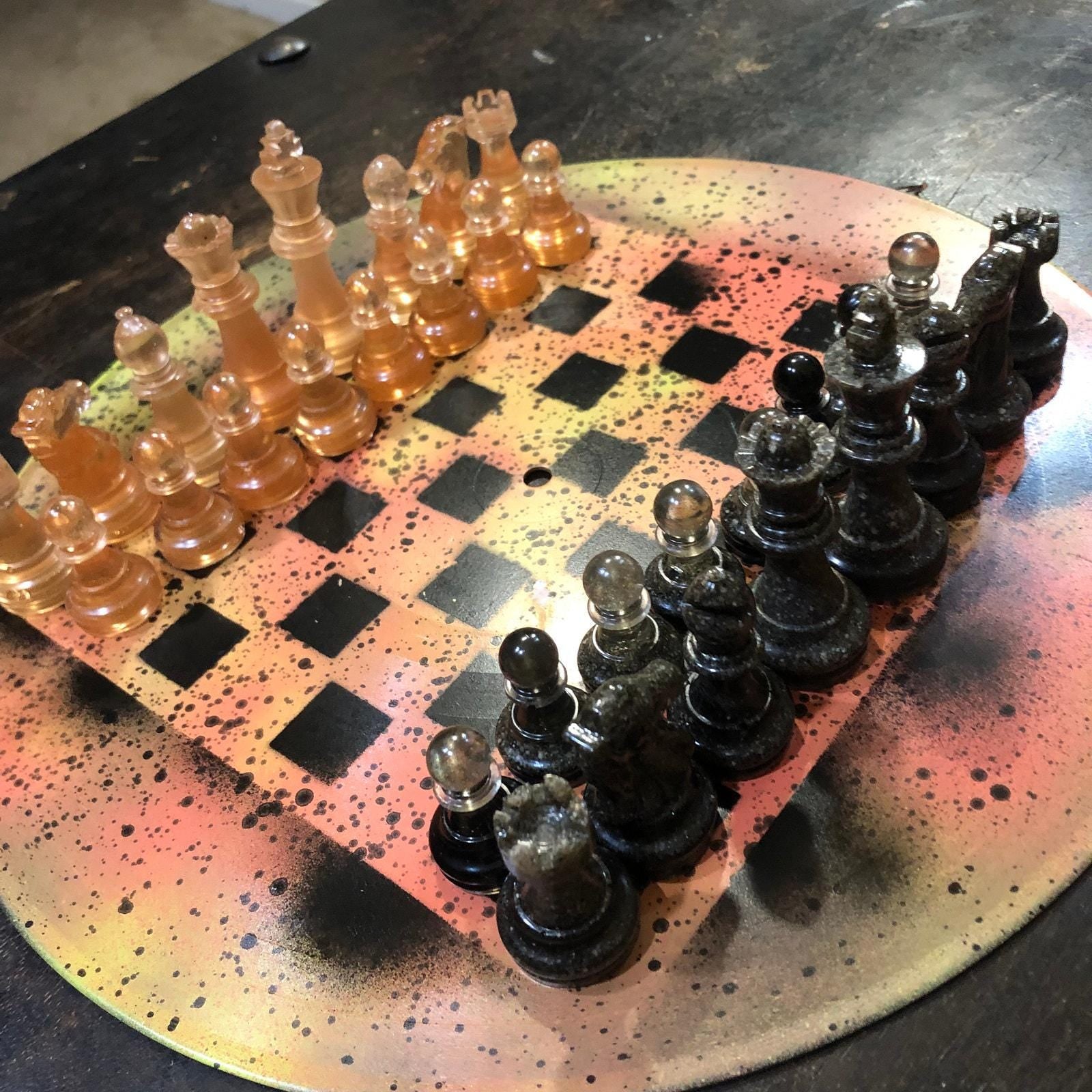 Introducing our unique Vinyl Record Chess Sets. Each set features handcrafted vinyl records transformed into eye-catching chess sets in a variety of vibrant colors. These one-of-a-kind chess sets are not just a game, but a piece of art to elevate your game nights and decor. Embrace the nostalgia of vinyl records with a modern twist in these bespoke, limited edition chess sets.