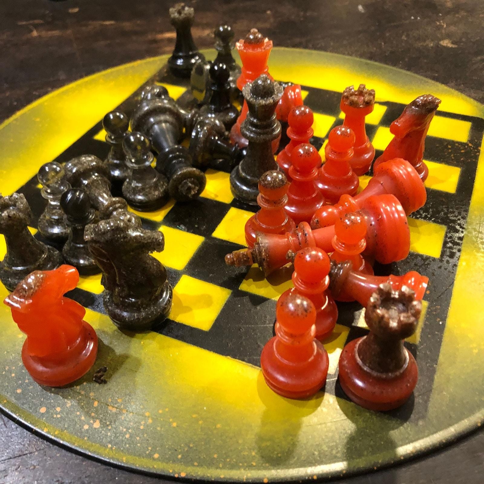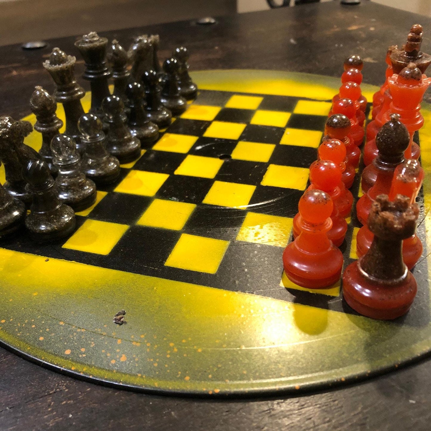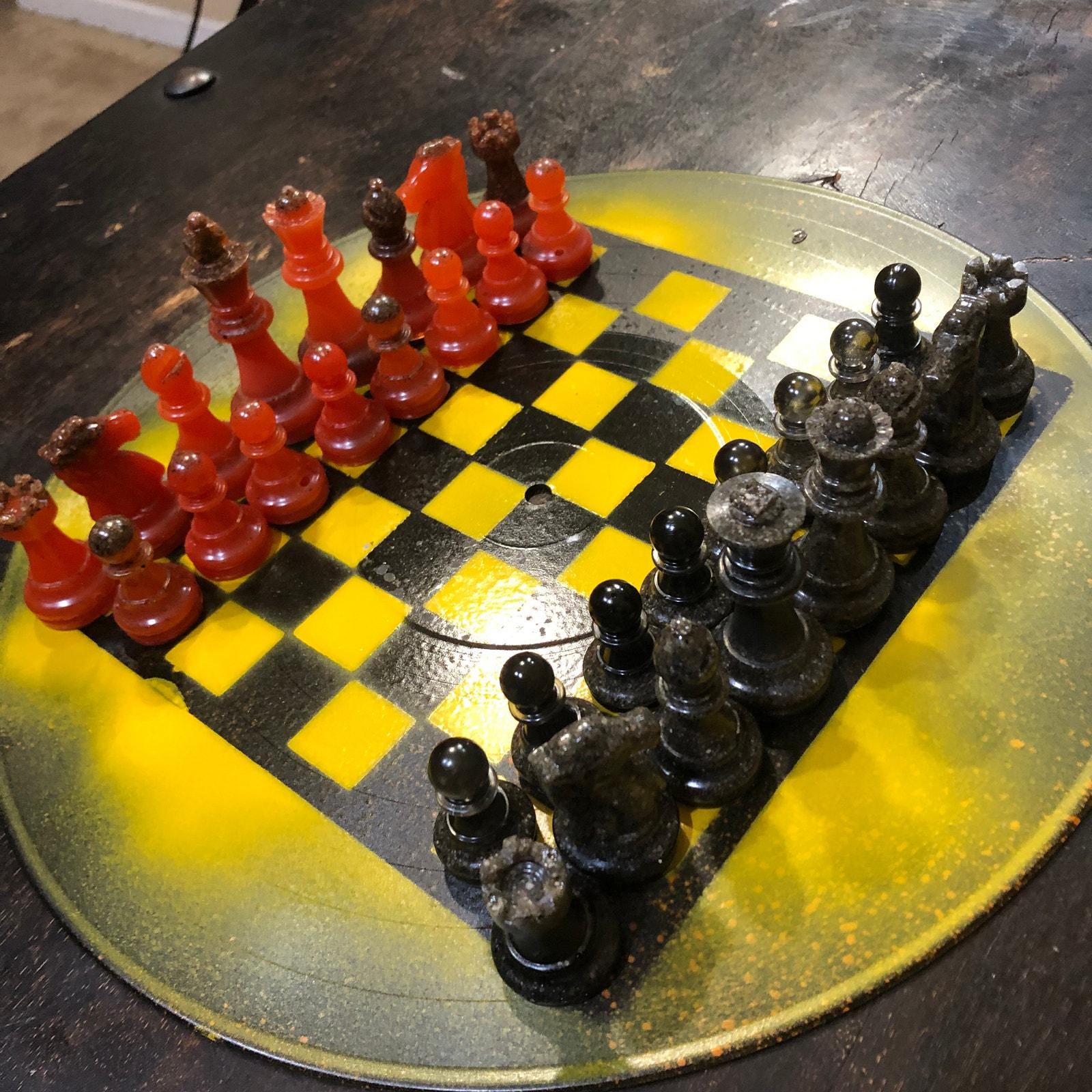 Introducing our unique Vinyl Record Chess Sets. Each set features handcrafted vinyl records transformed into eye-catching chess sets in a variety of vibrant colors. These one-of-a-kind chess sets are not just a game, but a piece of art to elevate your game nights and decor. Embrace the nostalgia of vinyl records with a modern twist in these bespoke, limited edition chess sets.