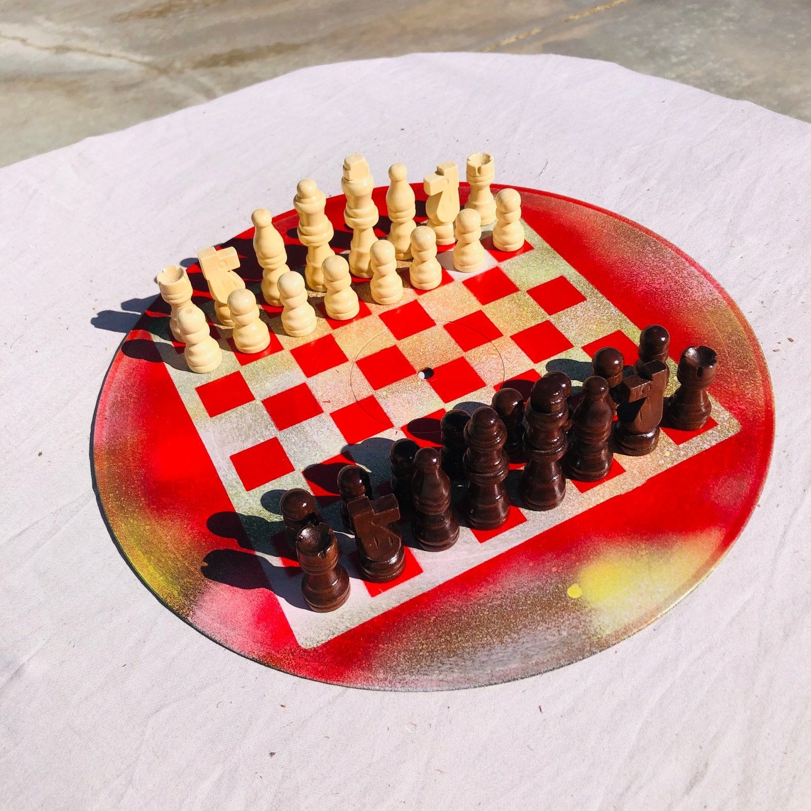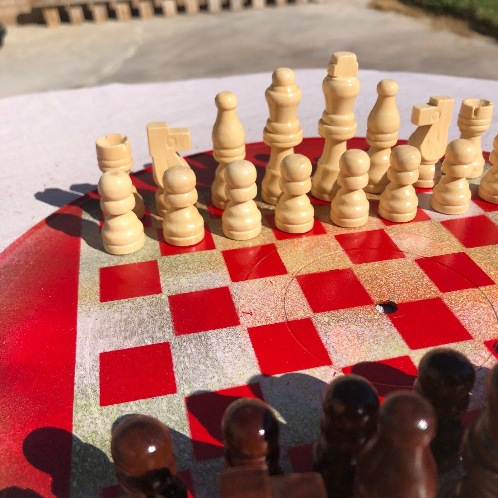 Introducing our unique Vinyl Record Chess Sets. Each set features handcrafted vinyl records transformed into eye-catching chess sets in a variety of vibrant colors. These one-of-a-kind chess sets are not just a game, but a piece of art to elevate your game nights and decor. Embrace the nostalgia of vinyl records with a modern twist in these bespoke, limited edition chess sets.