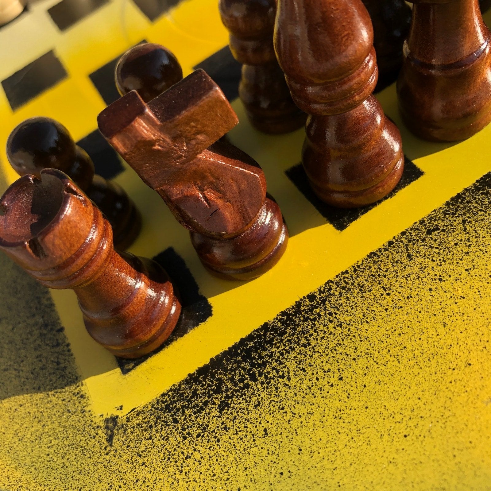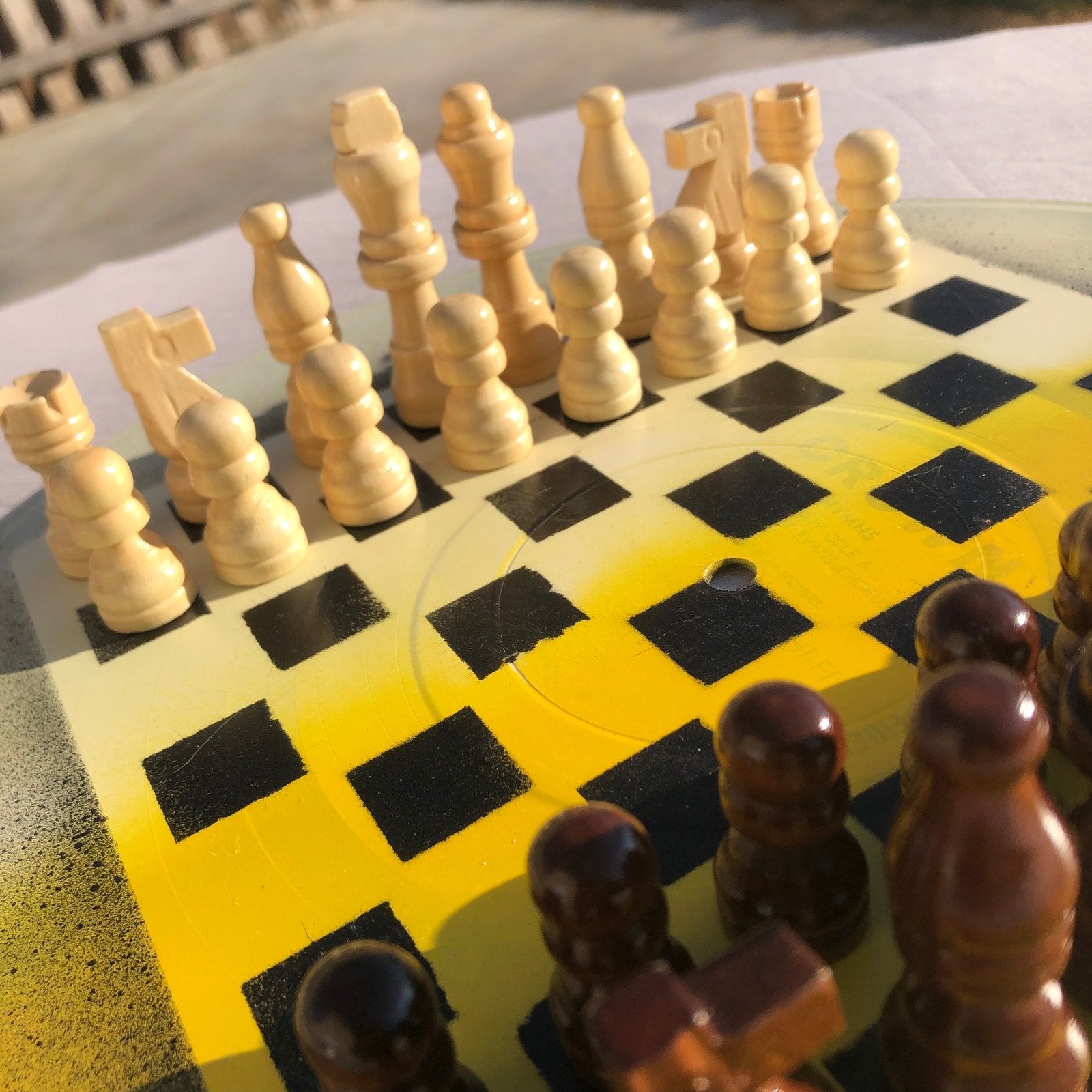 Introducing our unique Vinyl Record Chess Sets. Each set features handcrafted vinyl records transformed into eye-catching chess sets in a variety of vibrant colors. These one-of-a-kind chess sets are not just a game, but a piece of art to elevate your game nights and decor. Embrace the nostalgia of vinyl records with a modern twist in these bespoke, limited edition chess sets.