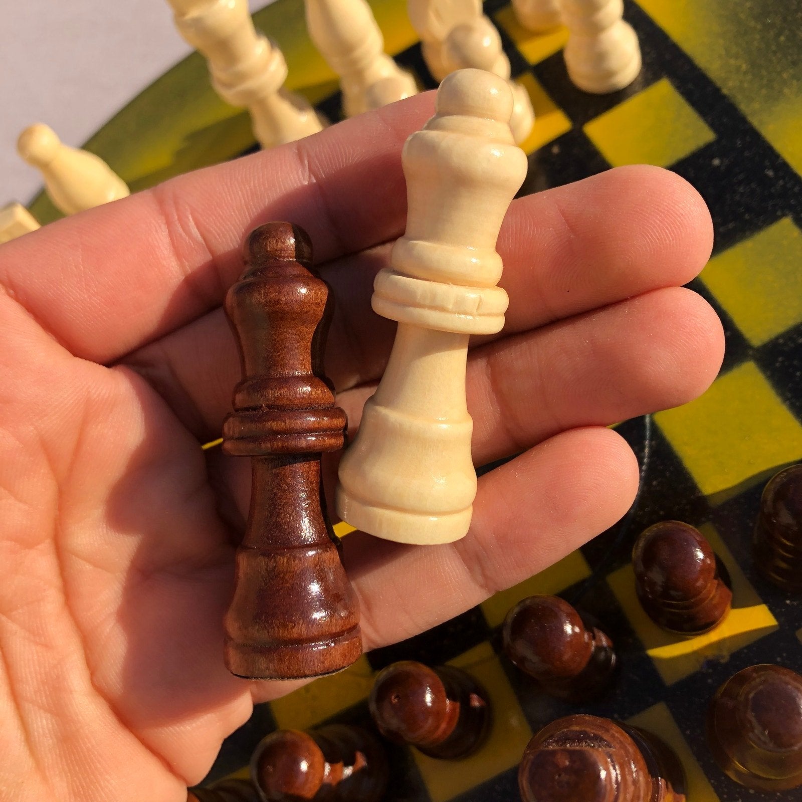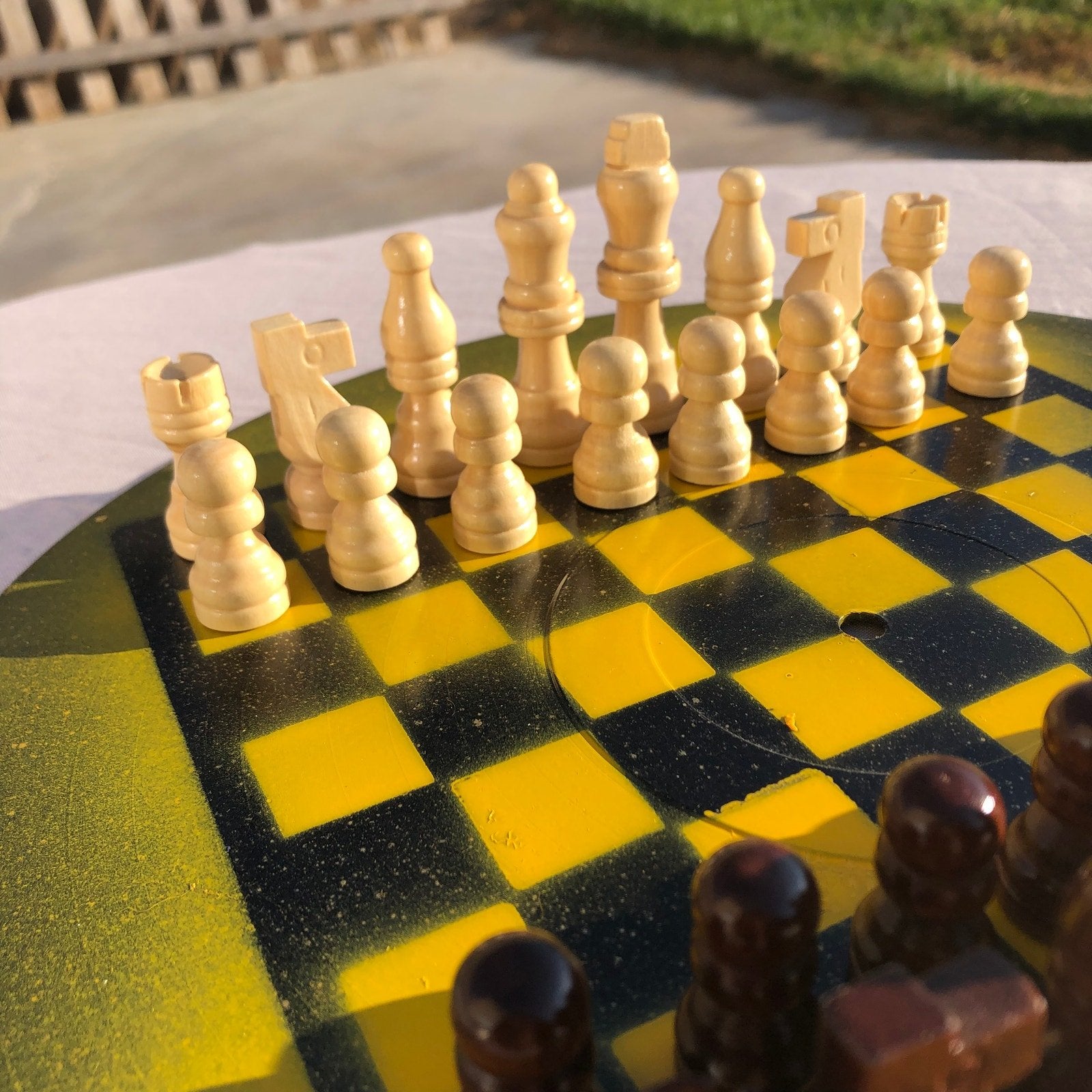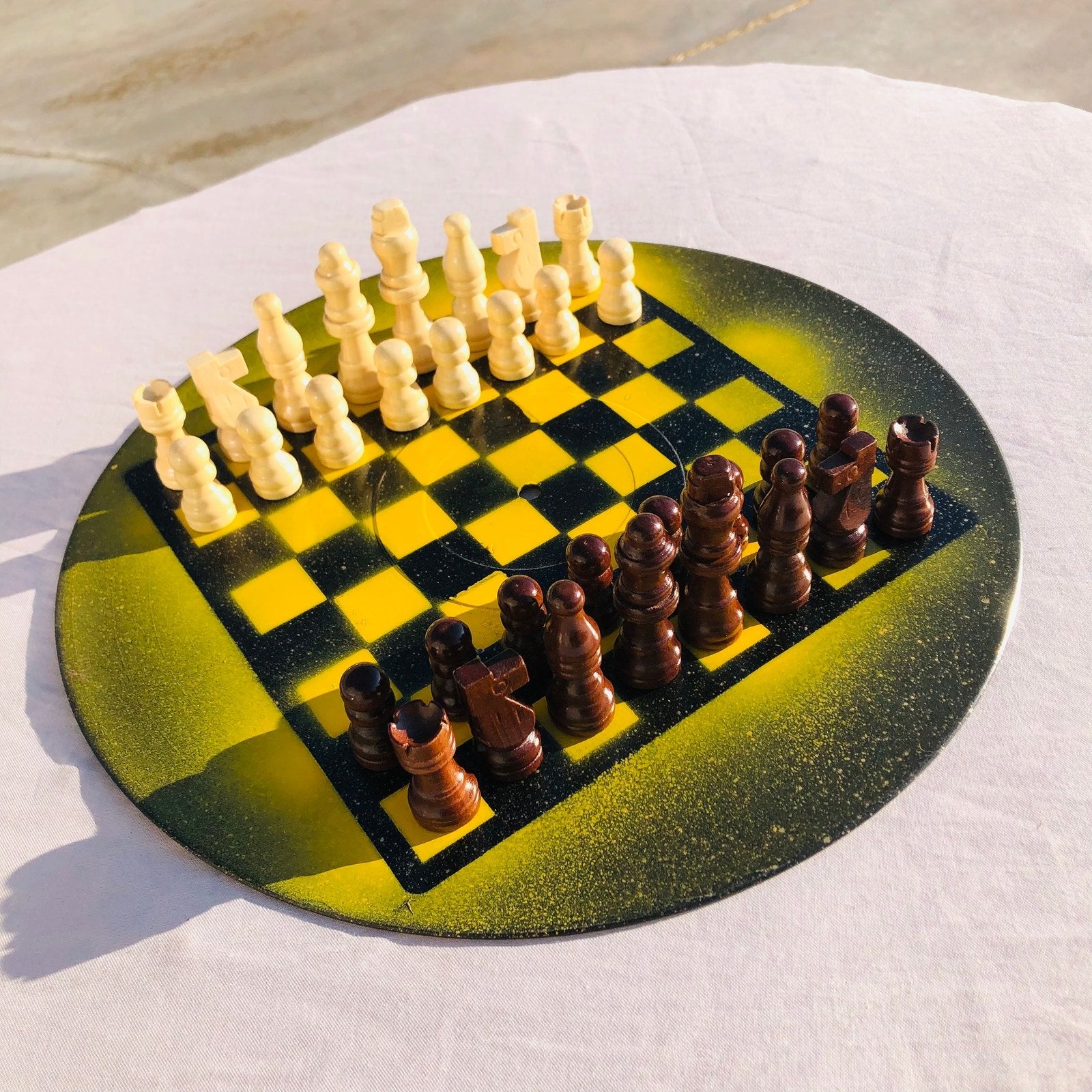Introducing our unique Vinyl Record Chess Sets. Each set features handcrafted vinyl records transformed into eye-catching chess sets in a variety of vibrant colors. These one-of-a-kind chess sets are not just a game, but a piece of art to elevate your game nights and decor. Embrace the nostalgia of vinyl records with a modern twist in these bespoke, limited edition chess sets.