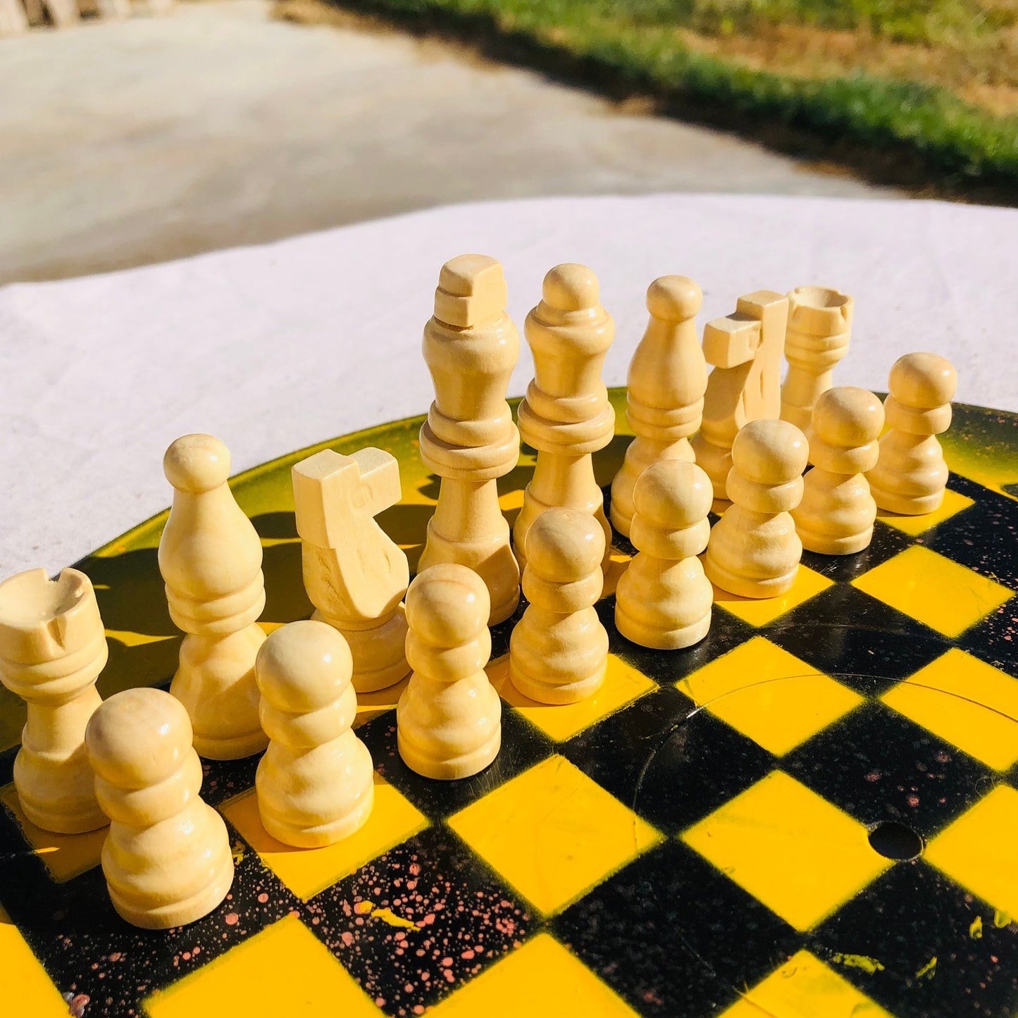 Introducing our unique Vinyl Record Chess Sets. Each set features handcrafted vinyl records transformed into eye-catching chess sets in a variety of vibrant colors. These one-of-a-kind chess sets are not just a game, but a piece of art to elevate your game nights and decor. Embrace the nostalgia of vinyl records with a modern twist in these bespoke, limited edition chess sets.