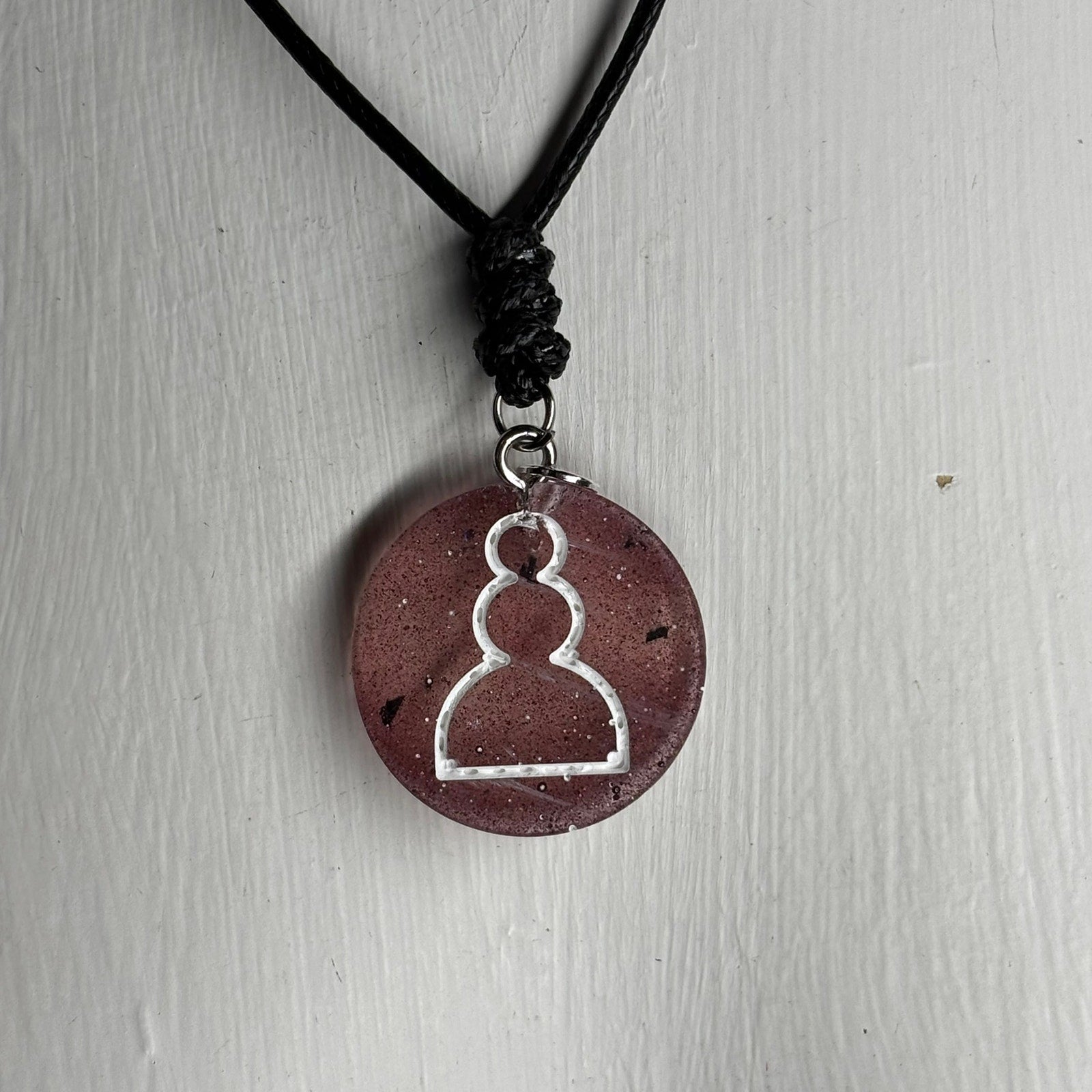 Violet Red Pawn - Handmade Resin Chess Necklace