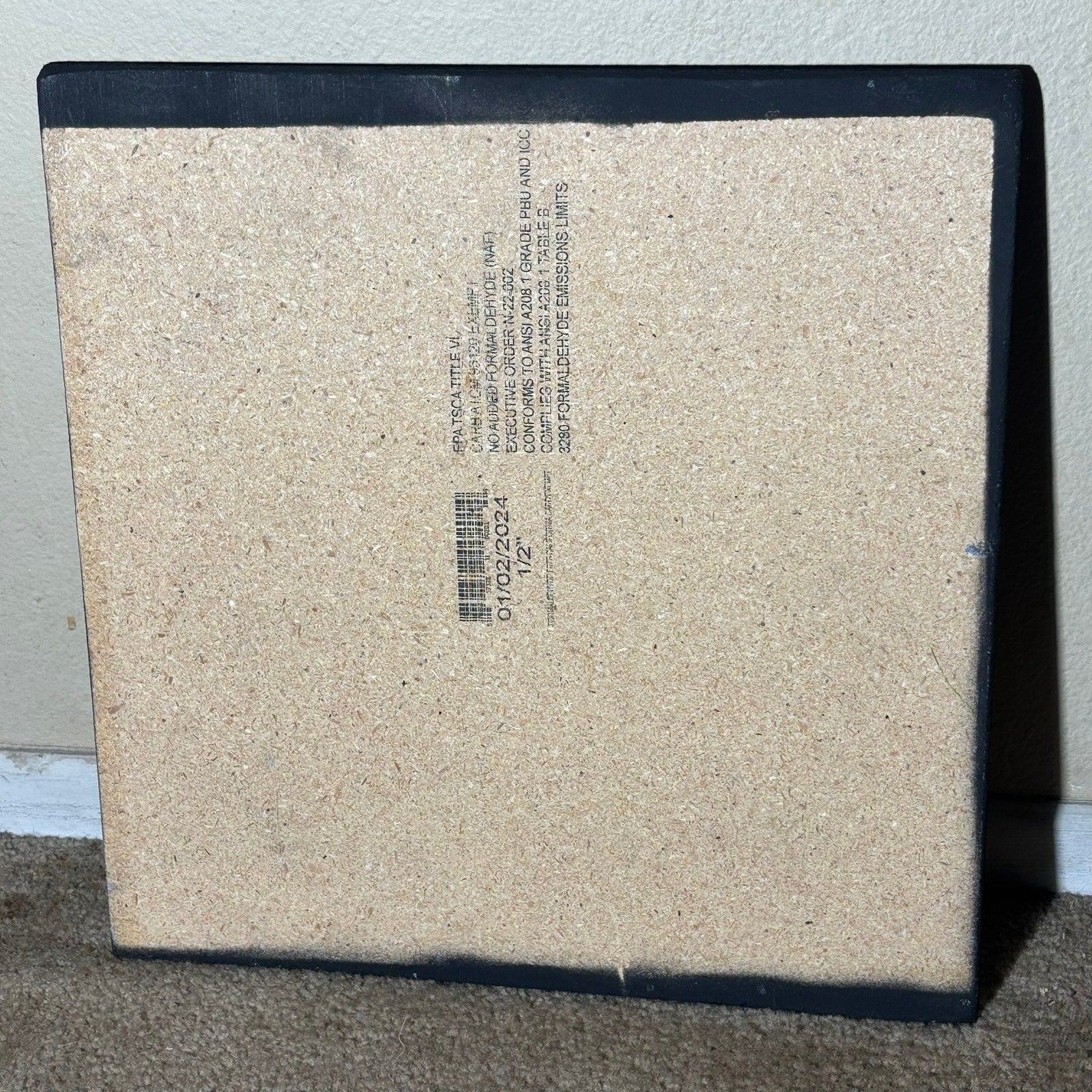 The board is crafted from durable particle board, painted with care to create the classic chess square pattern. What makes this board special is the unique 12x12 piece of scrapbook paper inlaid in the center, adding a personal touch to your game.