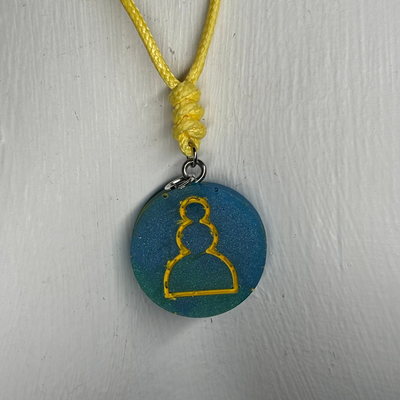 Yellow & Blue Pawn - Handmade Resin Chess Necklace
