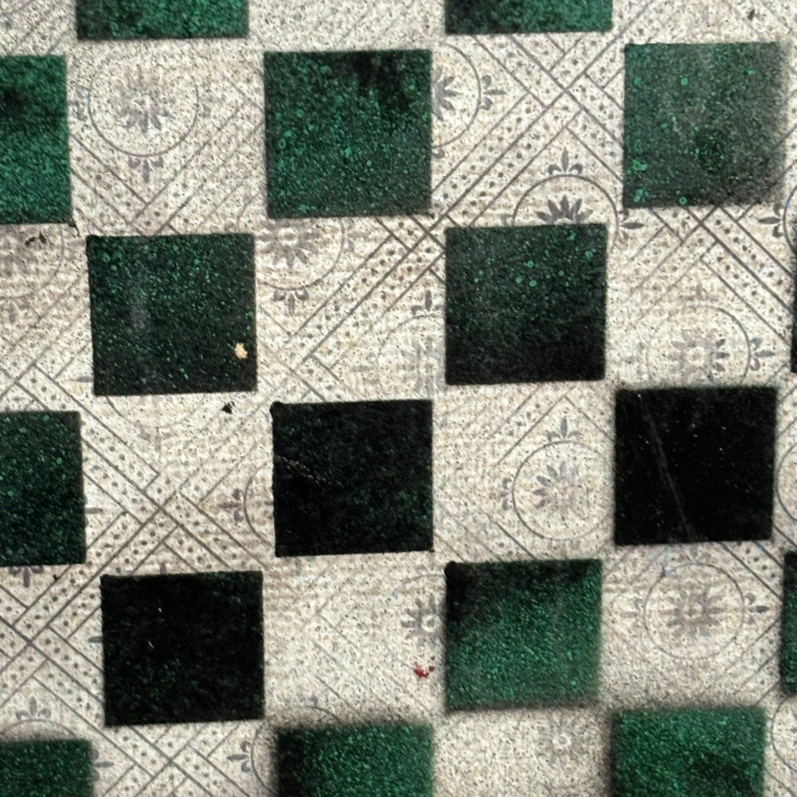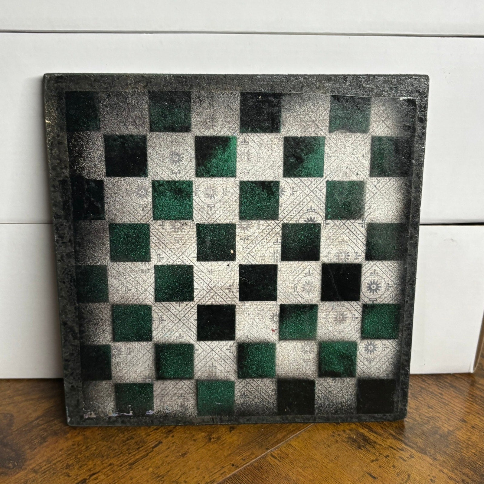 This is a one-of-a-kind, hand-painted chess board that will add a touch of artistry to your game. These are spray painted particle boards and have a double side. One side is painted and the backside is lined with scrapbook paper and has a different design. (The Scrapbook paper part is not meant to be played on but you can!)