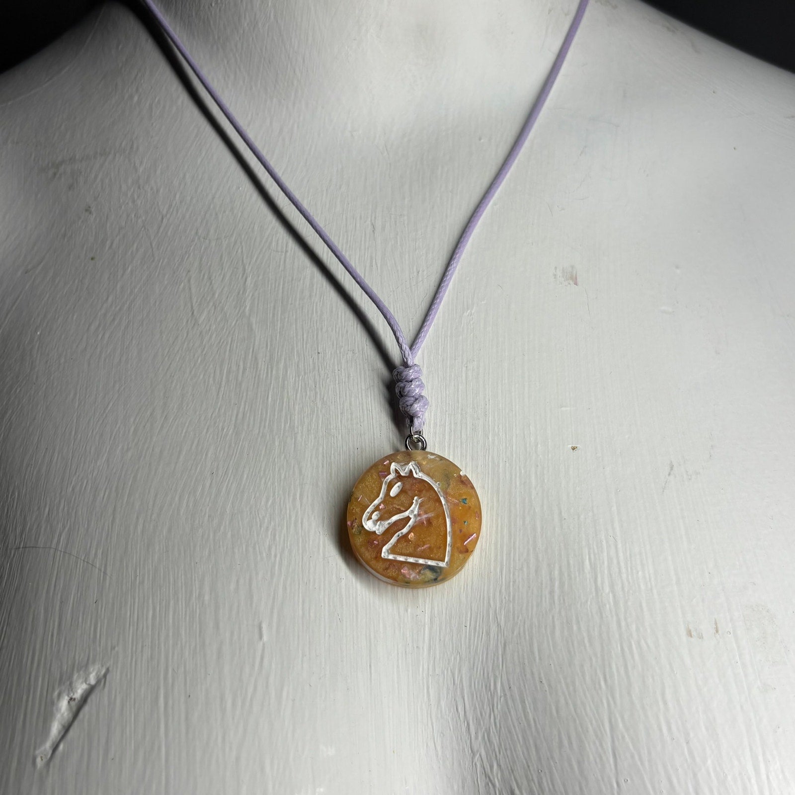 Yellow Crystal Knight - Handmade Resin Chess Necklace