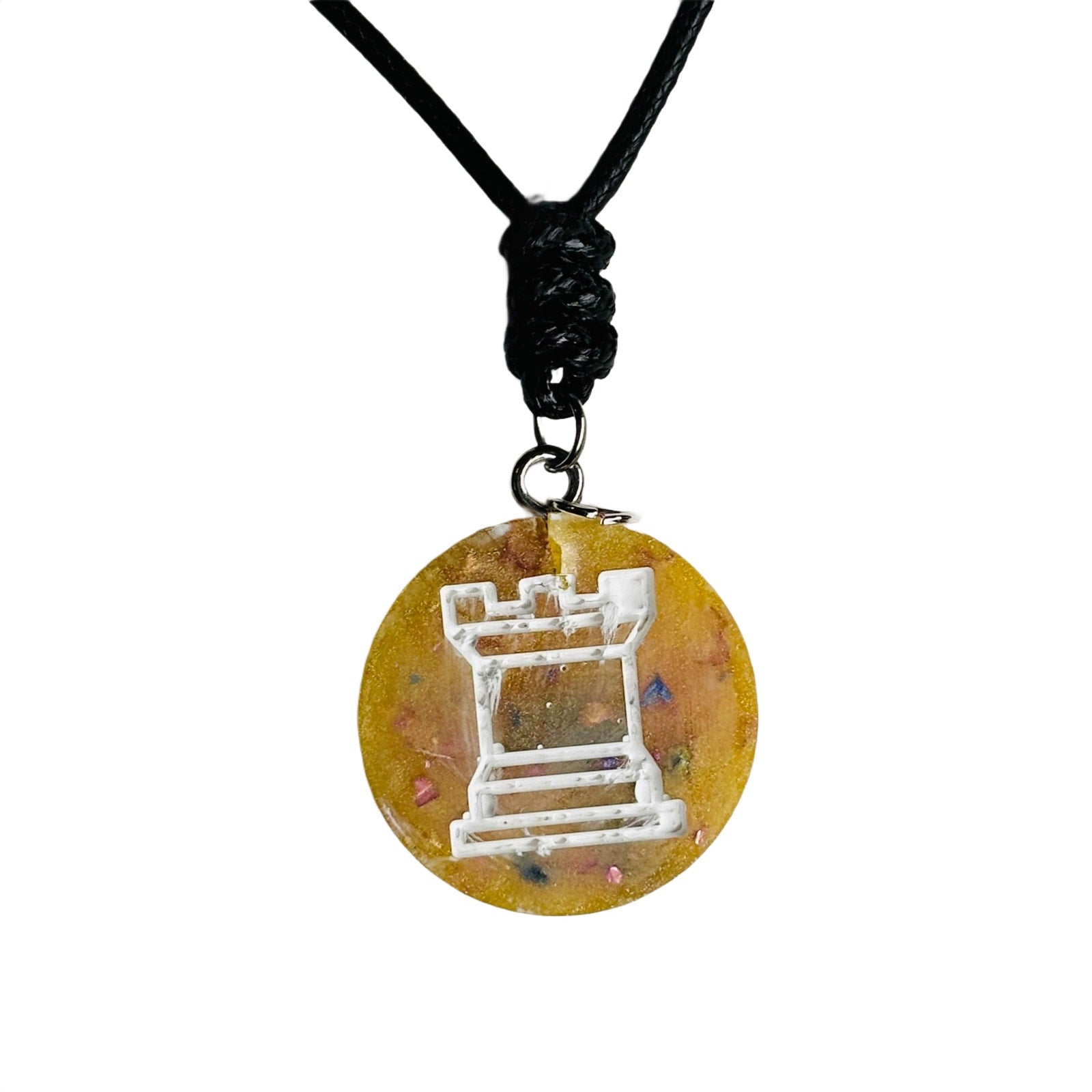 Yellow Crystal Rook - Handmade Resin Chess Necklace