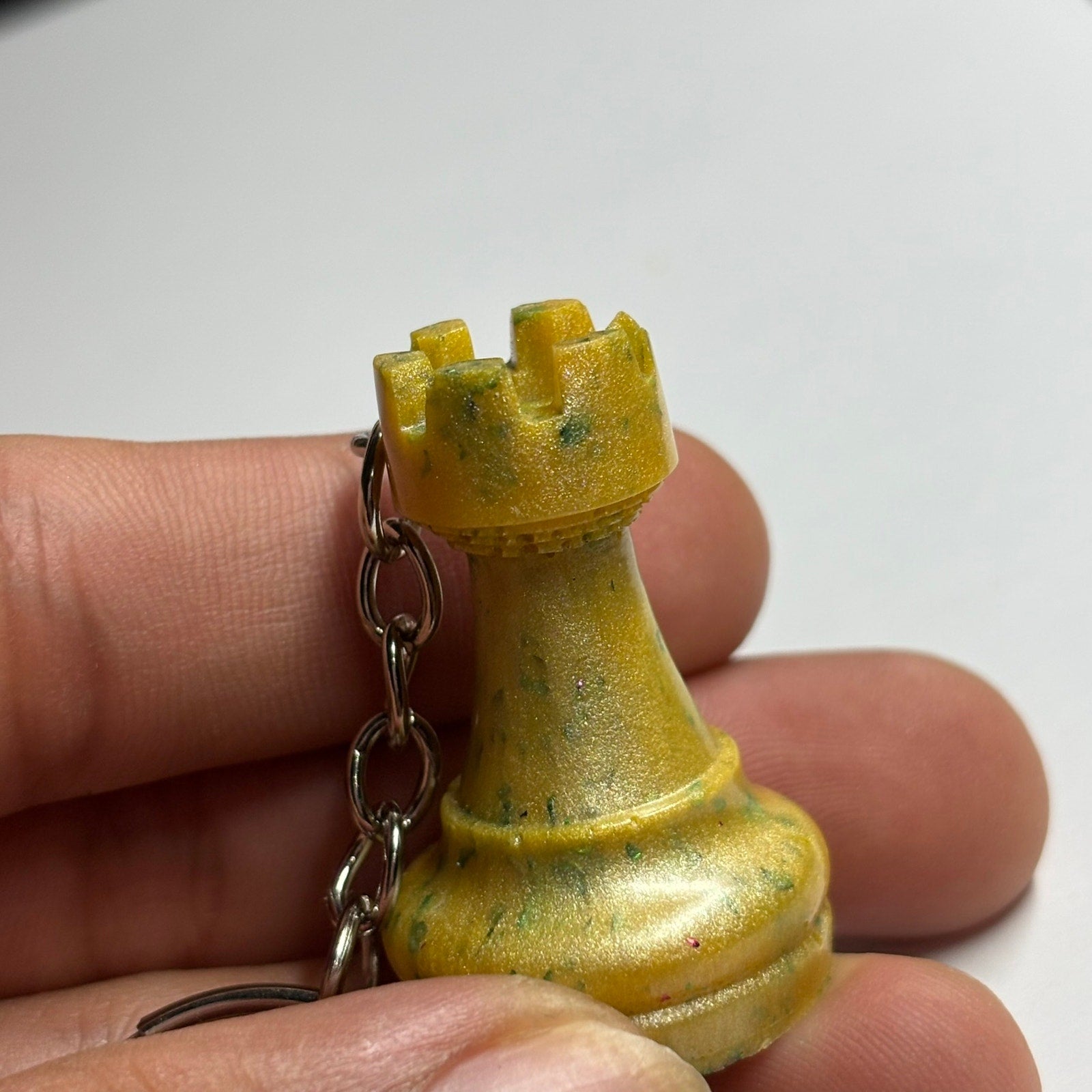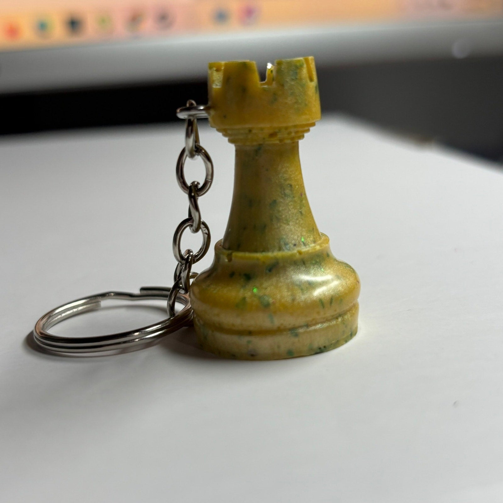 Yellow Emerald Green Rook - Handmade Resin Keychain