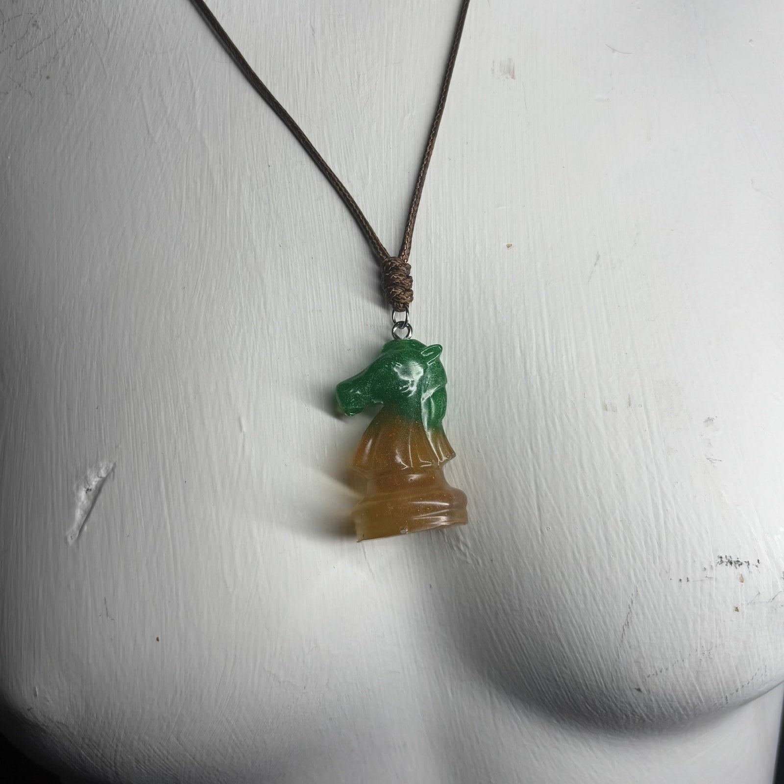 Yellow & Green Knight - Handmade Resin Chess Necklace