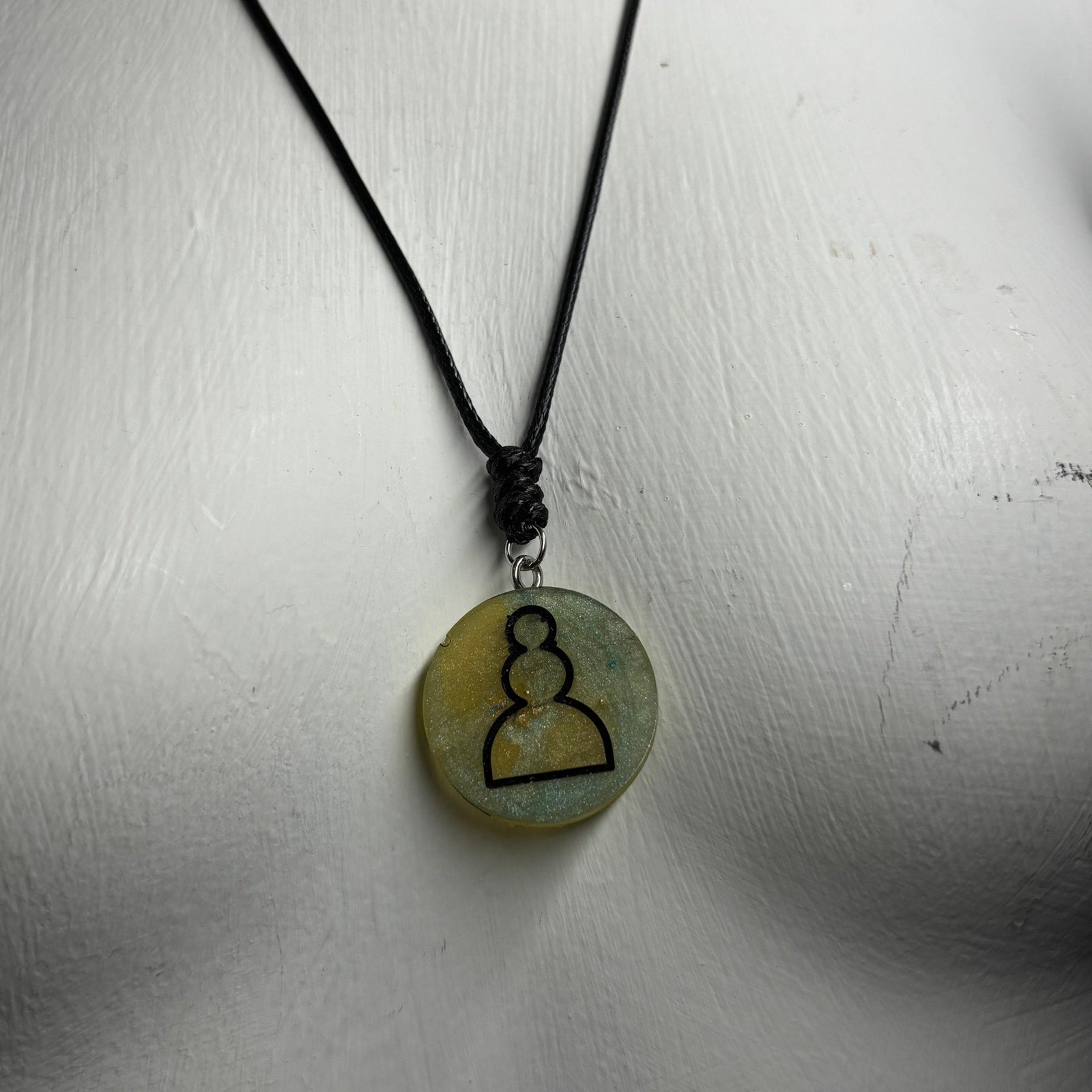 Yellow/Green Swirl Pawn - Handmade Resin Chess Necklace