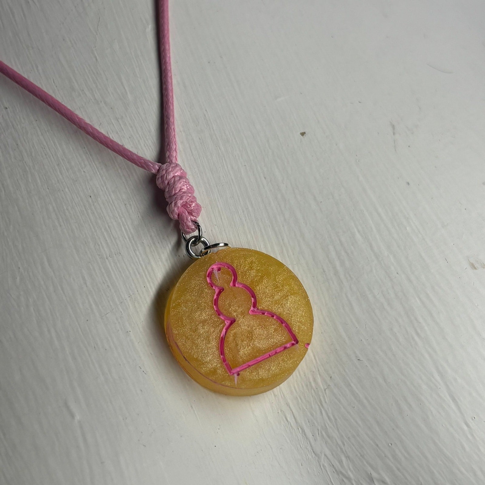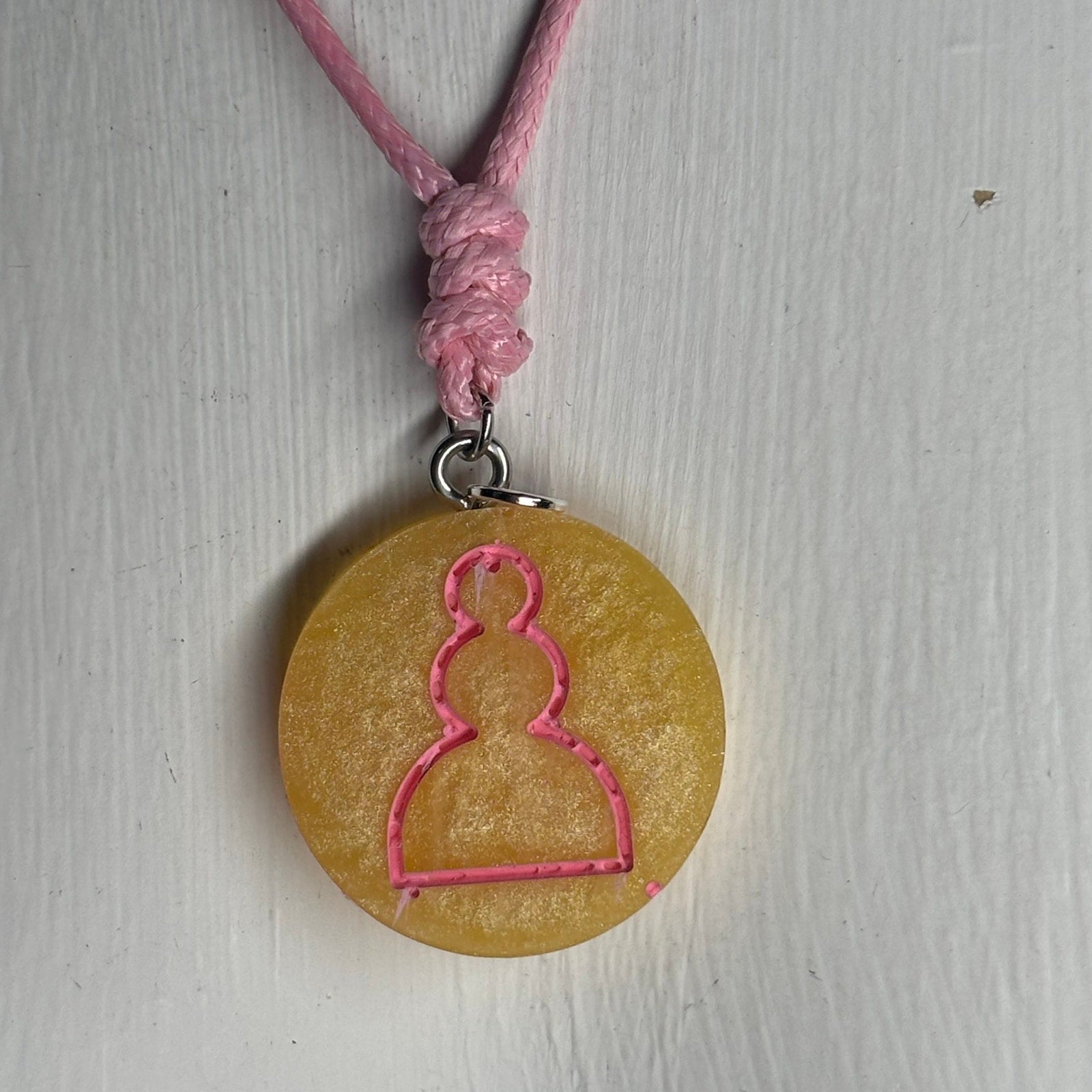 Yellow Pink Pawn - Handmade Resin Chess Necklace