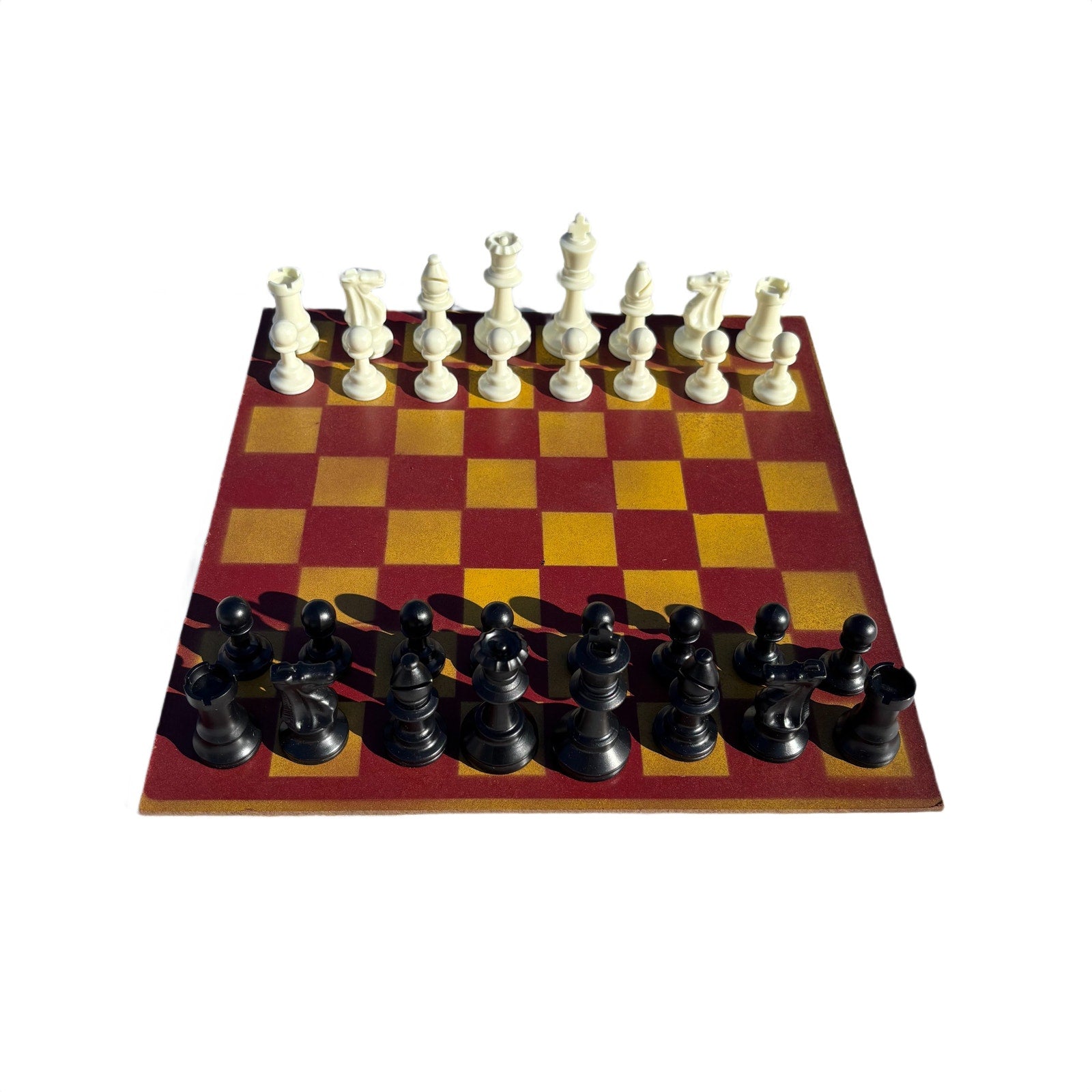 Introducing our exclusive Handcrafted Hardboard Chess Set, meticulously designed with precision and care. Measuring 12 inches by 12 inches, this chess set features a beautifully painted hardwood board that doubles as a work of art. Each set is a unique, one-of-a-kind creation, crafted by hand to ensure that no two sets are alike. Elevate your gaming experience with this exceptional chess set that combines vibrant design with the touch of artisan craftsmanship.