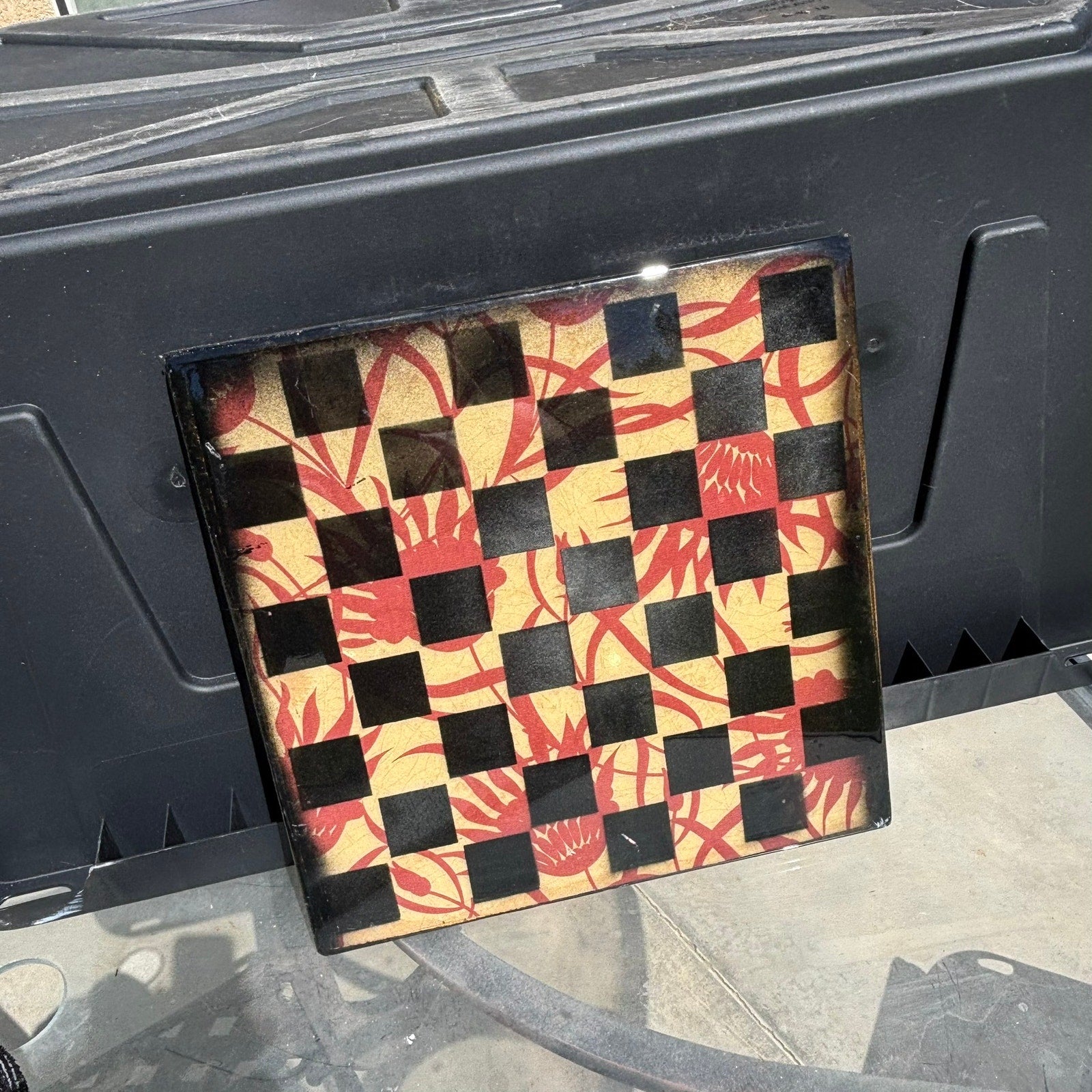Yellow & Red Vintage Pattern - Resin Coated Chess Board