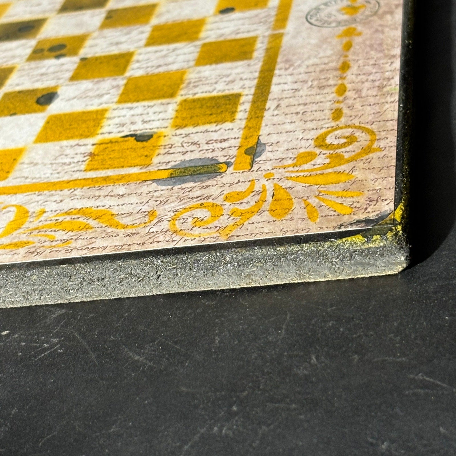 Each board features a layer of beautifully Scrapbook Paper Fused/Glued with particle board to give it a unique pretty pattern. We then paint squares onto the board to make them into fabulous chess boards. Made with a sturdy particle board base and smooth, beveled edges, this board is stunning.